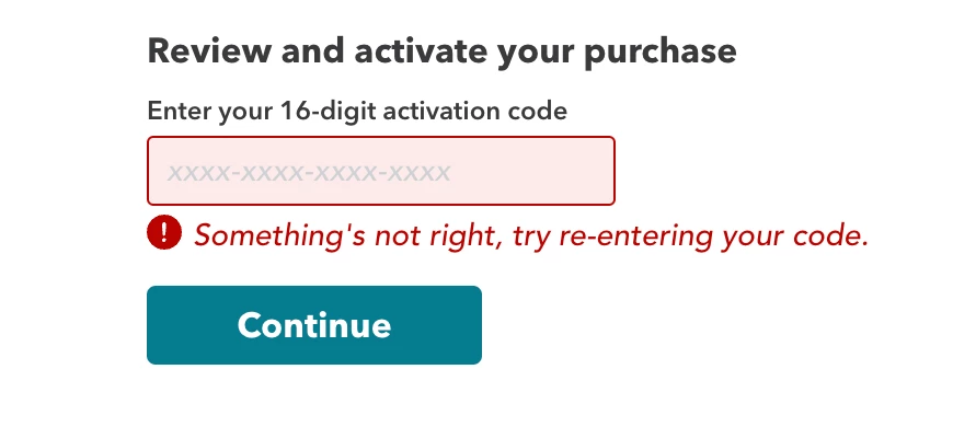 You only need to use your TurboTax Online code once on the activation page. Using the code again will just give the error message you see.