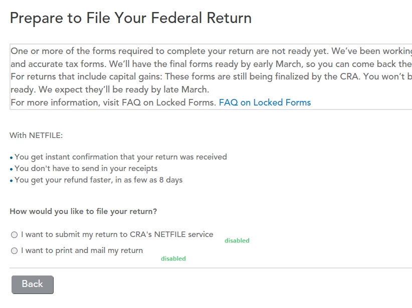 Federal -> I want to submit using mail and NETFILE -> grey out