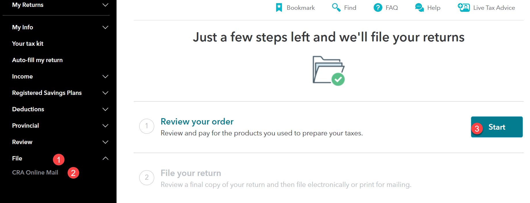 Please go to the menu in your return as seen in the image below and follow the steps to view the  charges. When you choose CRA Online Mail you will click on Continue on the first screen that opens then you will be on the screen seen below which will open up the Secure checkout form.