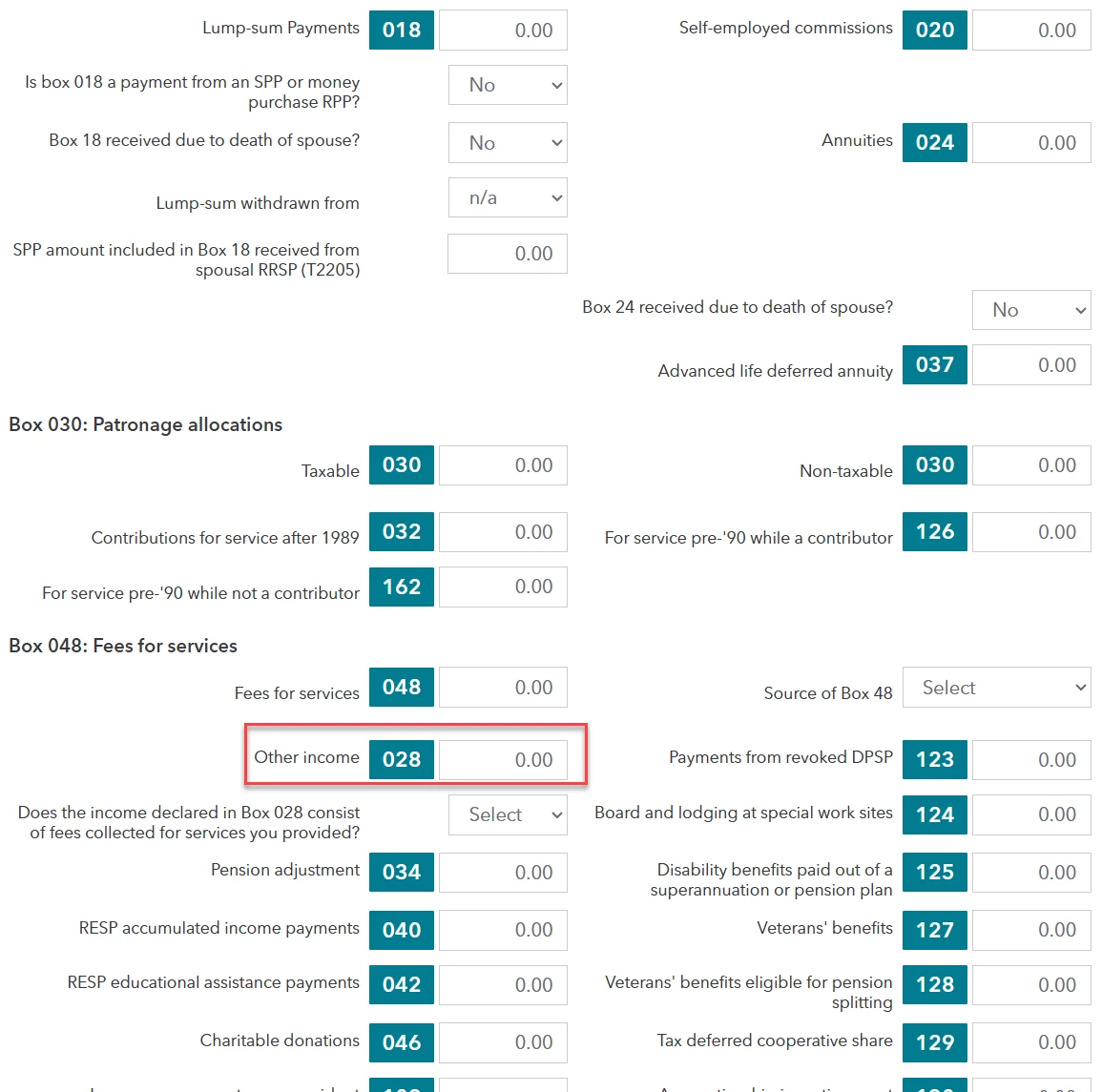 Hi, TurboTax does have box 28 for T4A slips. Box 28 on a T4A slip is used to report 'other income.' In TurboTax, you should enter the amount from box 28 in the section designated for 'Other Income.'