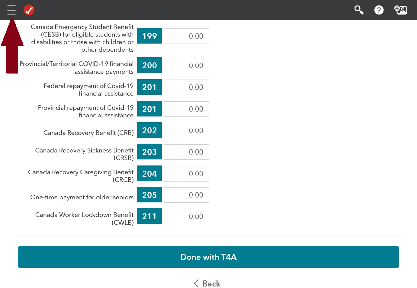 4. Scroll down and select the T4A Pension, Retirement, Annuity tab.