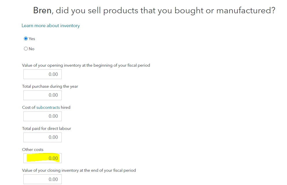 Enter your BUSINESS information and Continue till you get to the screen(Yourself), did you sell products that you bought or manufactured?