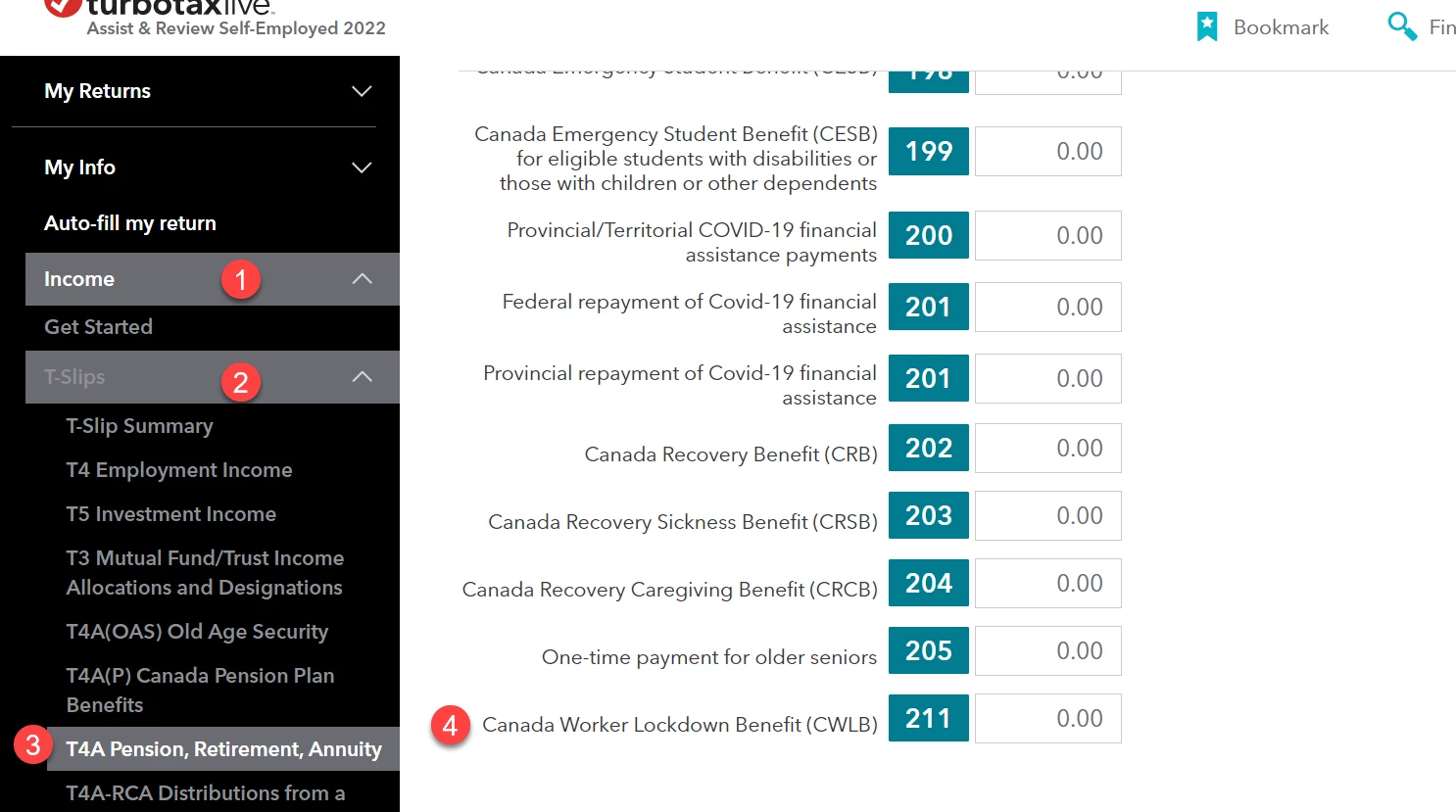 I need to put in income from cerb t4a box 211. Where is it on my 2022 return?