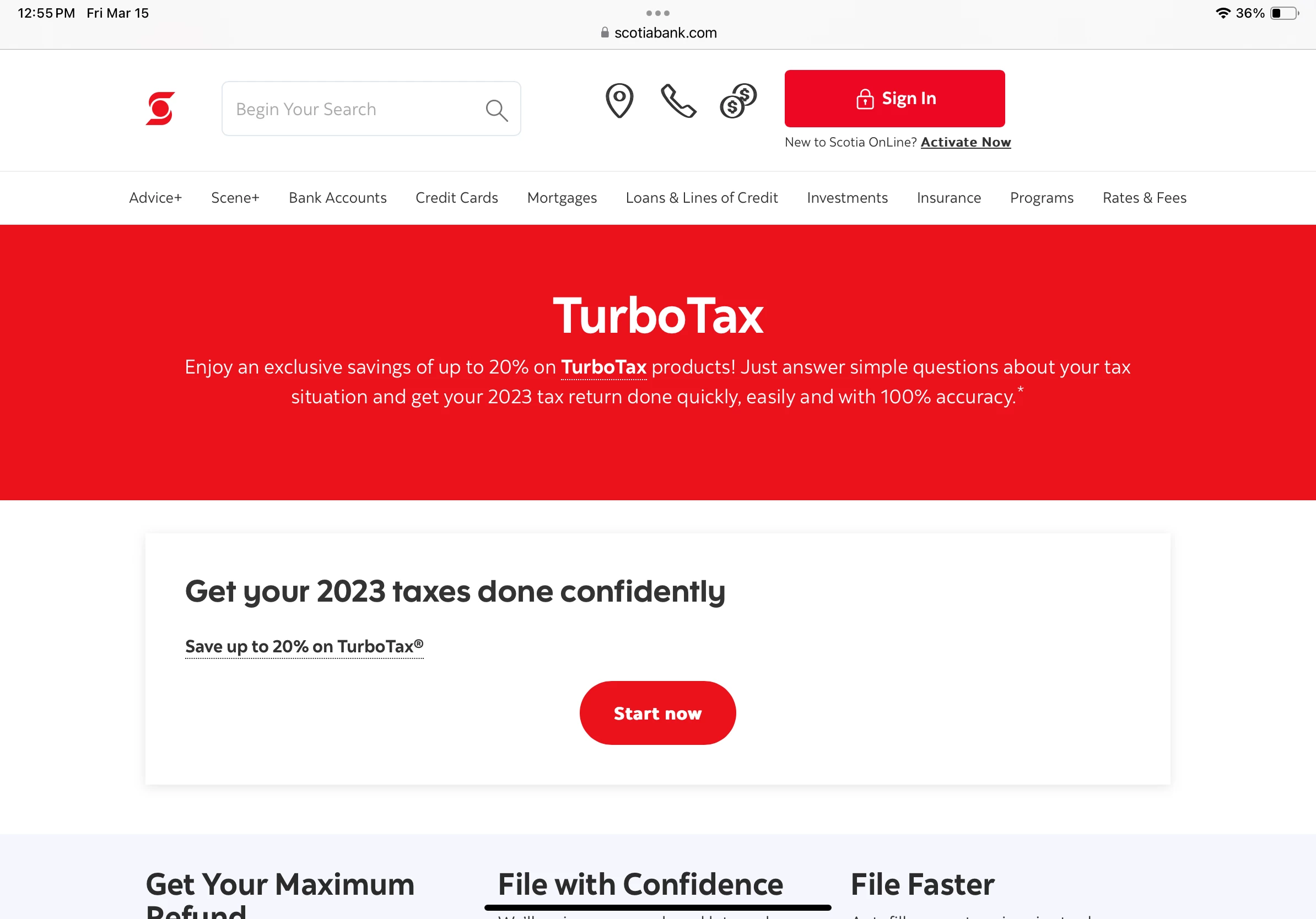 Why are turbo tax only giving a 15% discount through scotiabank when the scotiabank site says 20%