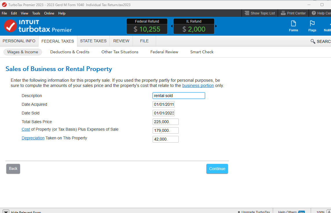 How do I report the 4797 on turbo. I reported the sale of the rental under the depreciation tab and added sale of business property too. but it did not generate the 4797 form . please provide the steps to do this thanks
