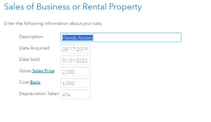 Wages & Income >Other Business Situations > Sale of Business Property >Start or Revisit > Enter your sale