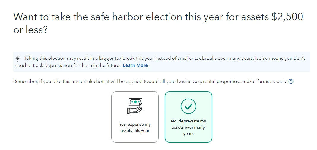 Now Turbotax is complaing that on Schedule E - Eligible Sec 179 property should not be checked Yes. Only Tangible personal property is eligible for the Section 179 deduction. I am confused which option to check.