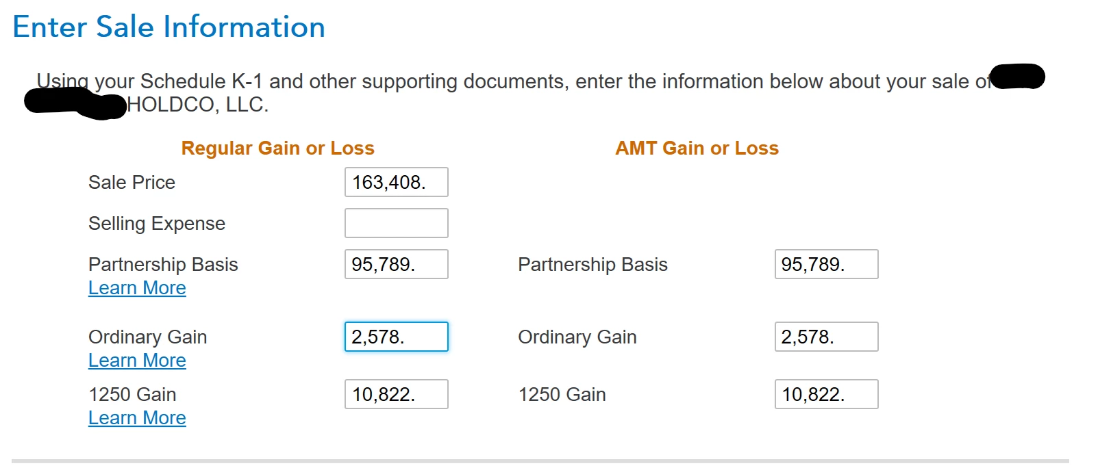 K-1 Sold interest - 1245 recapture - capital gain - how to enter in turbotax?