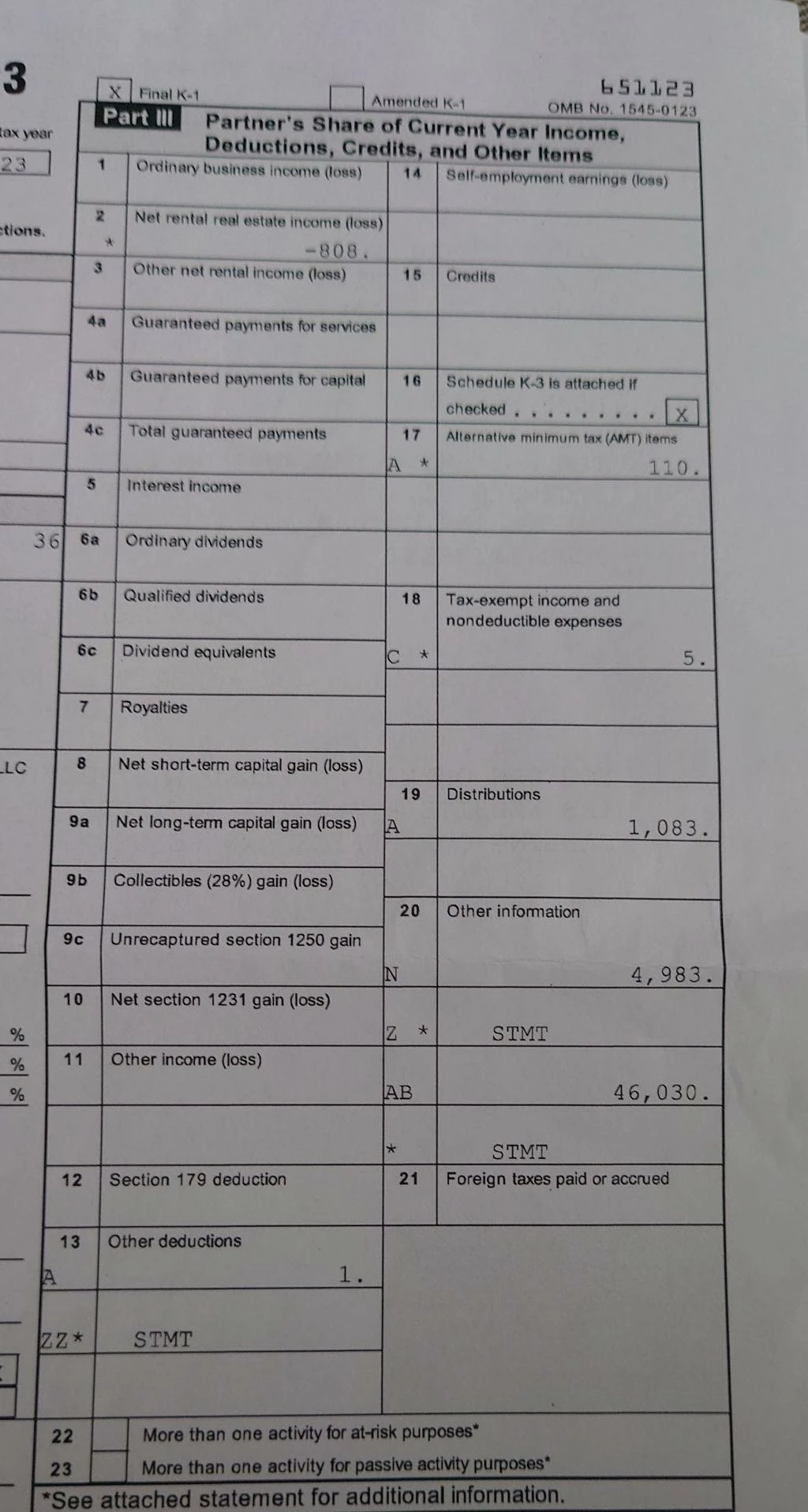 Here is what is in the K-1 Statement