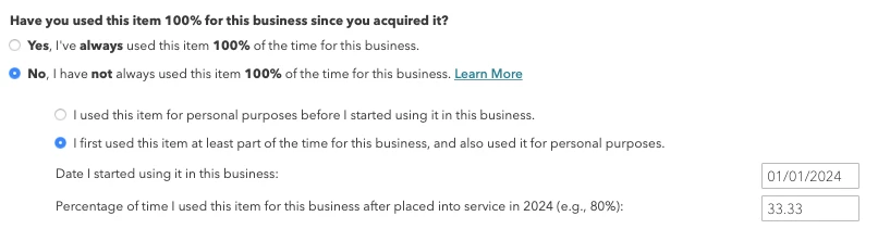I purchased my primary residence from 2016 and used for personal until 2024/01/01, then I rented for 4 months (33.33%) and afterwards I used as primary residence again in 2024. I input the corresponding rental/personal days (120/366) and selected NO when asked if I had prior business. Here's some questions: