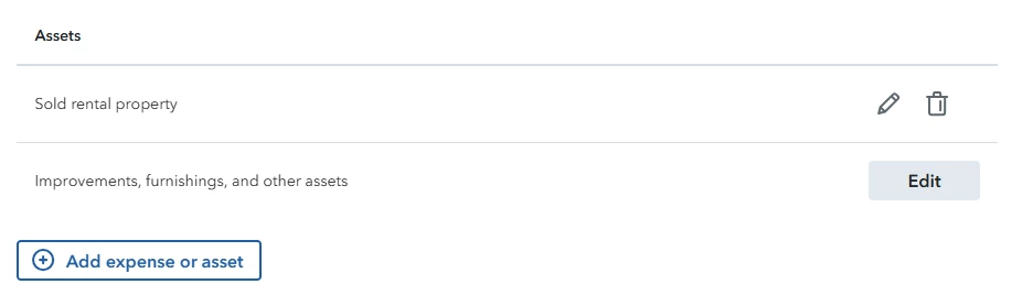 1. Go to your asset summary page and click Edit beside the first rental asset you sold.