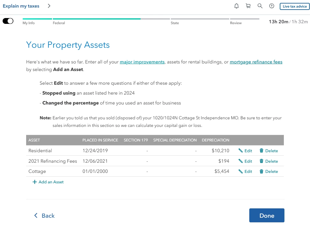 Thanks, that was helpful. What I also wanted folks to know is that if you tell TurboTax that you sold an asset, it does not trigger a wizard on it's own. Like you said, you have to go manually to each asset and mark it as sold. It may seem obvious  but the walk through can be triggered by TurboTax.