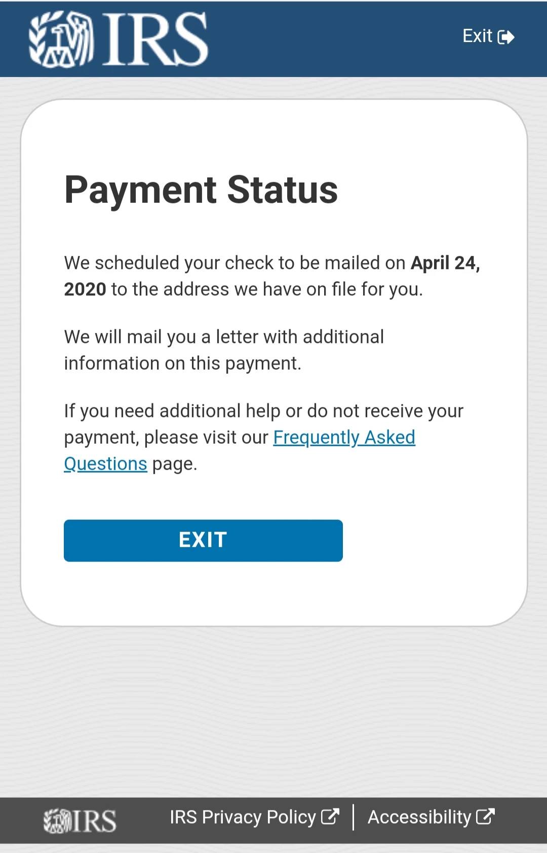 Yes!!!! And I am not a happy camper!! Especially after having to figure my way through the IRS website correctly. I finally get my information in and accepted on Tuesday and come today (Saturday) I get the "Your check will be mailed ON THE 24th.." message. This has been an exhausting experience to say the least. Praises be that this has been about the only thing I've had to go through in these times.