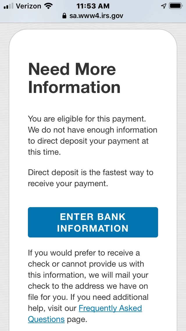 @iPhoneGuy86 How were you able to get the information? Did you go to the IRS website and changed it under non filers link? I need my funds as of yesterday. Lol. I was already thinking to re enter my info to make sure I got my funds, then I see all the posts on here and wish I would have went with my gut because I would have had them today.