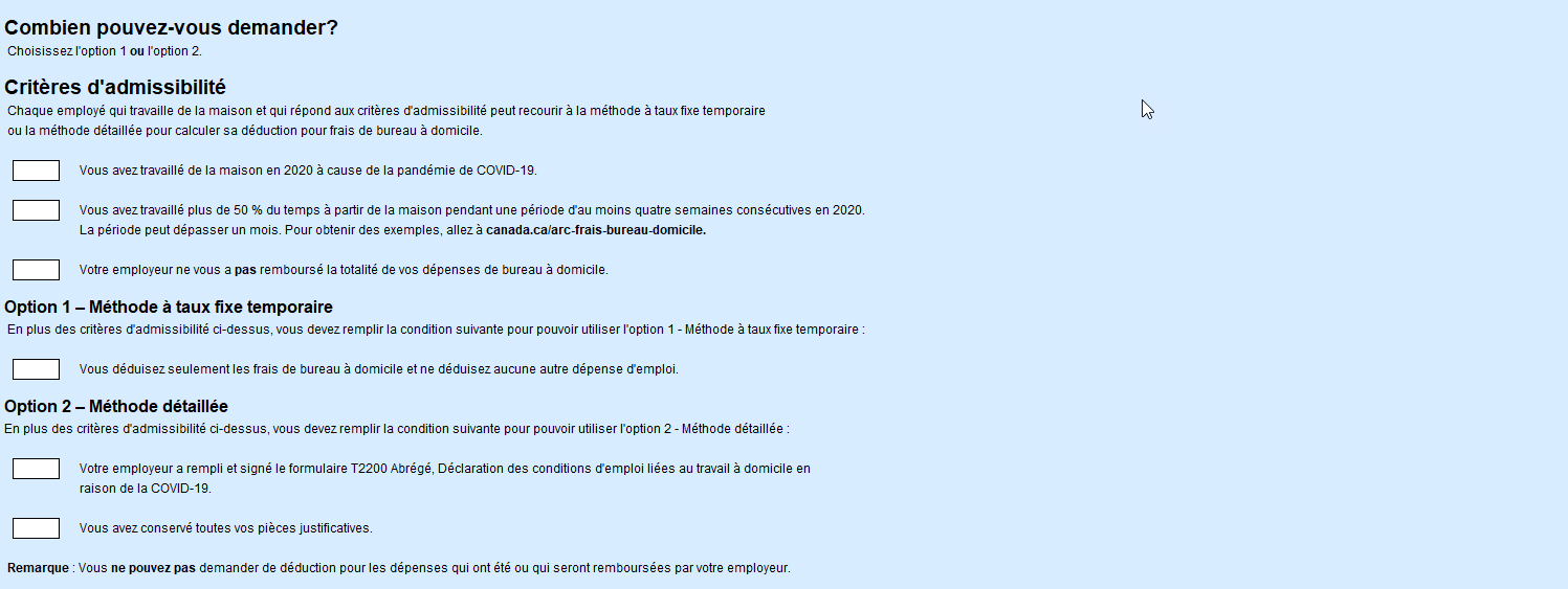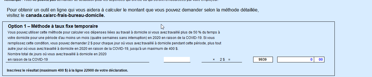 à quel endroit dois-je mettre la déductions de 2$ par jour pour le télétravail dû à la pandémie?