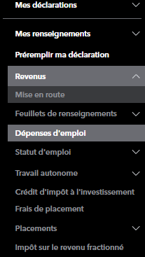 Dans le menu de gauche, cliquez Revenus - Dépenses d'emploi. Répondez OUI ou NON aux questions des deux premières pages. À la troisième page, vous trouverez les frais juridiques pour recouvrer un traitement, salaire, etc....