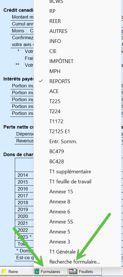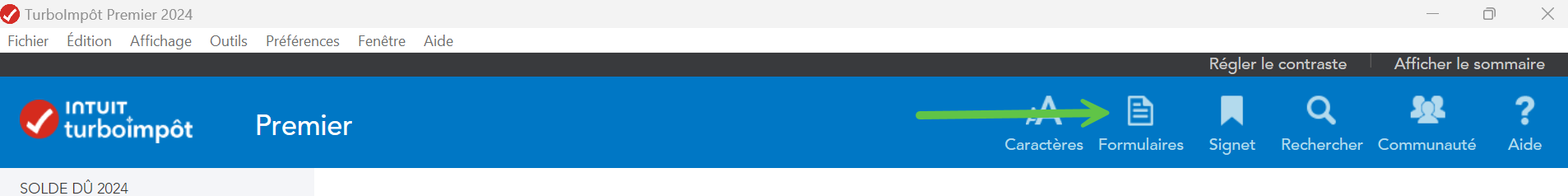 Dans TurboImpôt bureau cliquez sur Formulaires. Faites une recherche du formulaire T1 au bas de la page.
