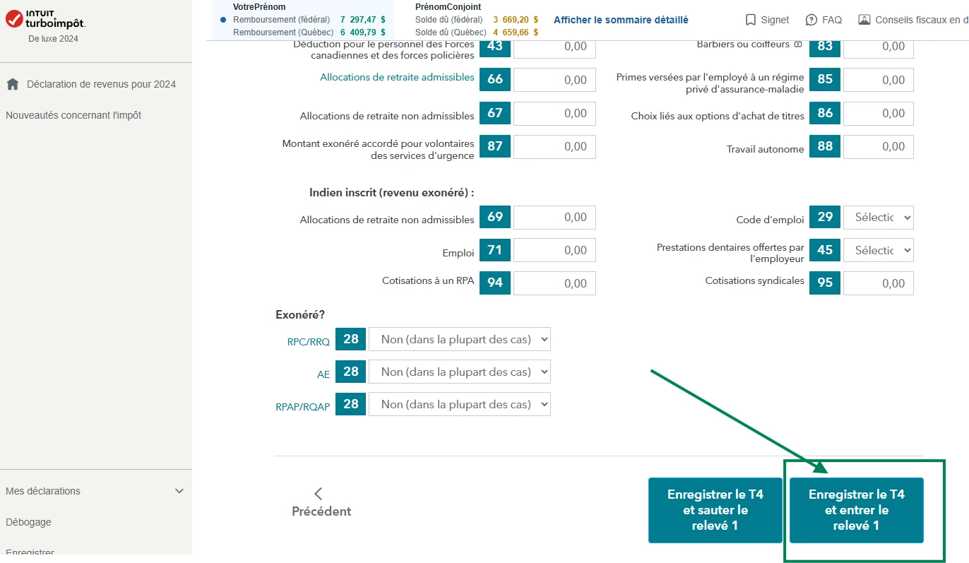 La grande majorité des cases du Relevé 1 se complète automatiquement à partir des cases du feuillet T4.