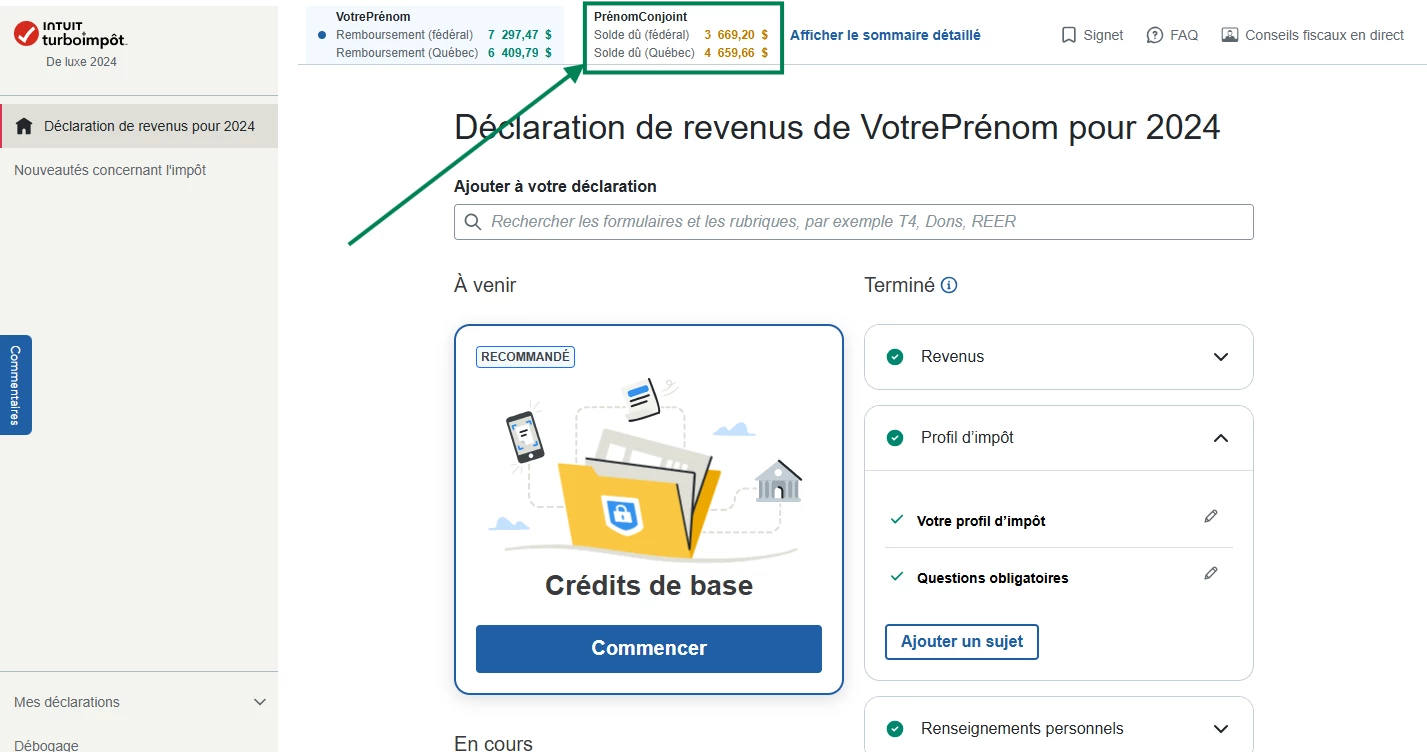 Dans la version en ligne, vous pouvez d'abord basculer dans la déclaration de votre conjoint.