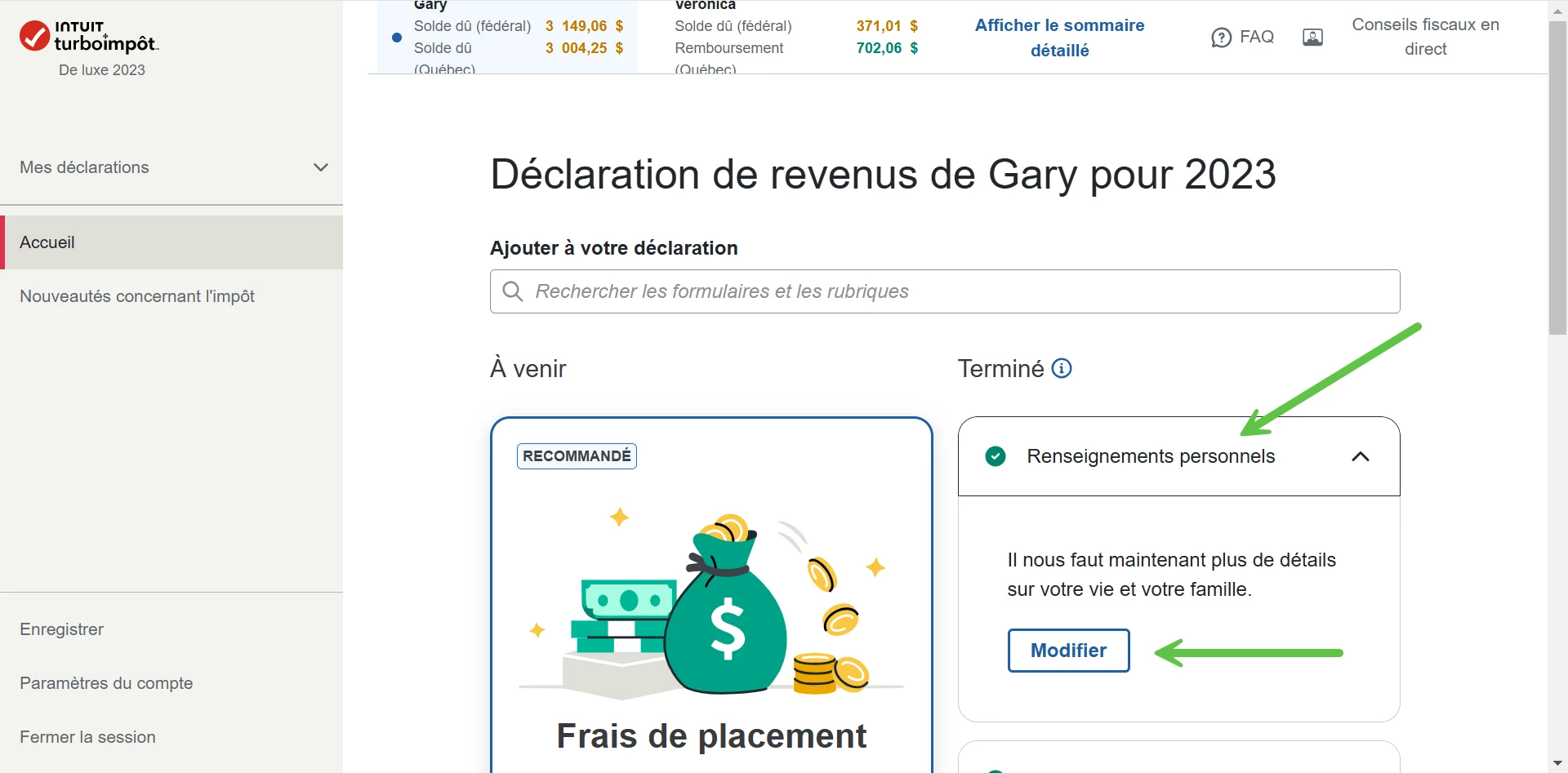 Dans TurboImpôt en ligne, sur la page d'accueil, cliquer sur Renseignements personnels, cliquer sur Modifier. Cliquer ensuite sur "Modifier" à côté du nom de la personne dont vous voulez changer le numéro d'assurance sociale (NAS). Modifier le numéro de NAS et cliquer sur "Continuer" pour enregistrer le changement.