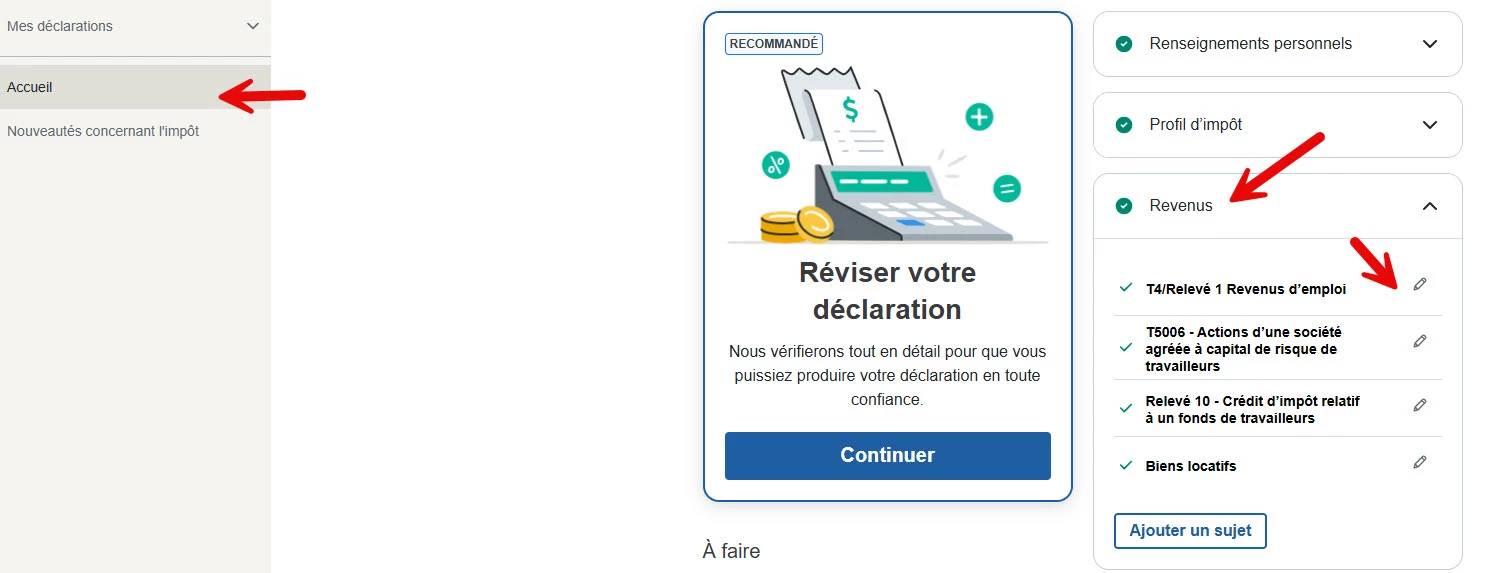 Le logiciel dit de "cliquez sur Modifier pour vérifier les renseignements de vos feuillets", mais il n'y a pas de bouton "Modifier"