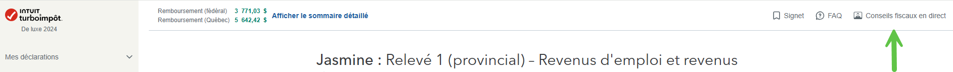 Ouvrez votre déclaration. Cliquez sur Conseils fiscaux en direct dnas le coin droit.
