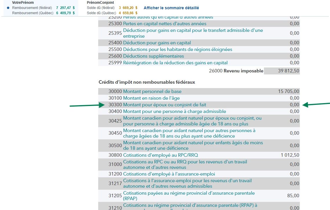 Merci pour votre réponse.Je viens de faire passer en revue ma déclaration de revenue en détail et dans toutes les étapes par un expertTurbo Impôt, jusqu'à la vérification finale et jusqu'avant l'envoi des deux déclarations en ligne au fédéral et à Québec. Dans ce processus nous avons résussi à voir le montant Impôt fédéral (Ligne 40600) d'environ 6600$ et non 0$ comme montré dans le sommaire d'impôt fédéral (l'objet de mon problème soulevé). Alors l'expert a conclu que le calcul d'impôt par le logiciel est bien effectué mais l'affichage dans SOMMAIRE IMPÔT FÉDÉRAL reste inexpliqué (BUG???) à suivre par les autorités compétentes de Turbo Impôt. L'expert a bel et bien pris note de ceci. De mon côté , le problème est résolu et je peux envoyer ma déclaration sans souçi.