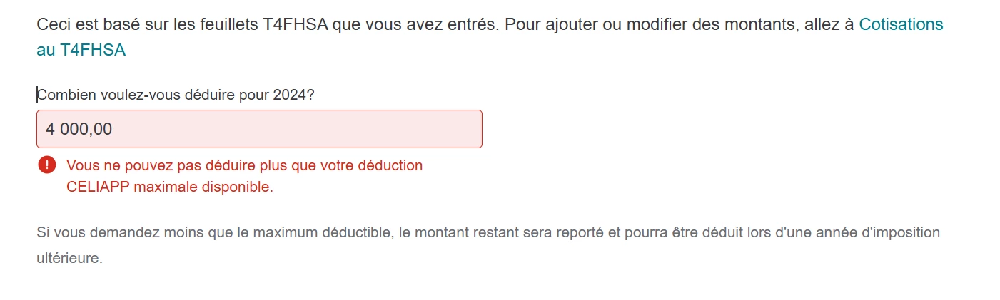 Cliquez sur T4FHSA/Relevé 32 et remplissez le T4FHSA. Si vous avez emprunté ou trasnféré de l'argent pour cotiser à votre CELIAPP, vous aurez un RL-32.