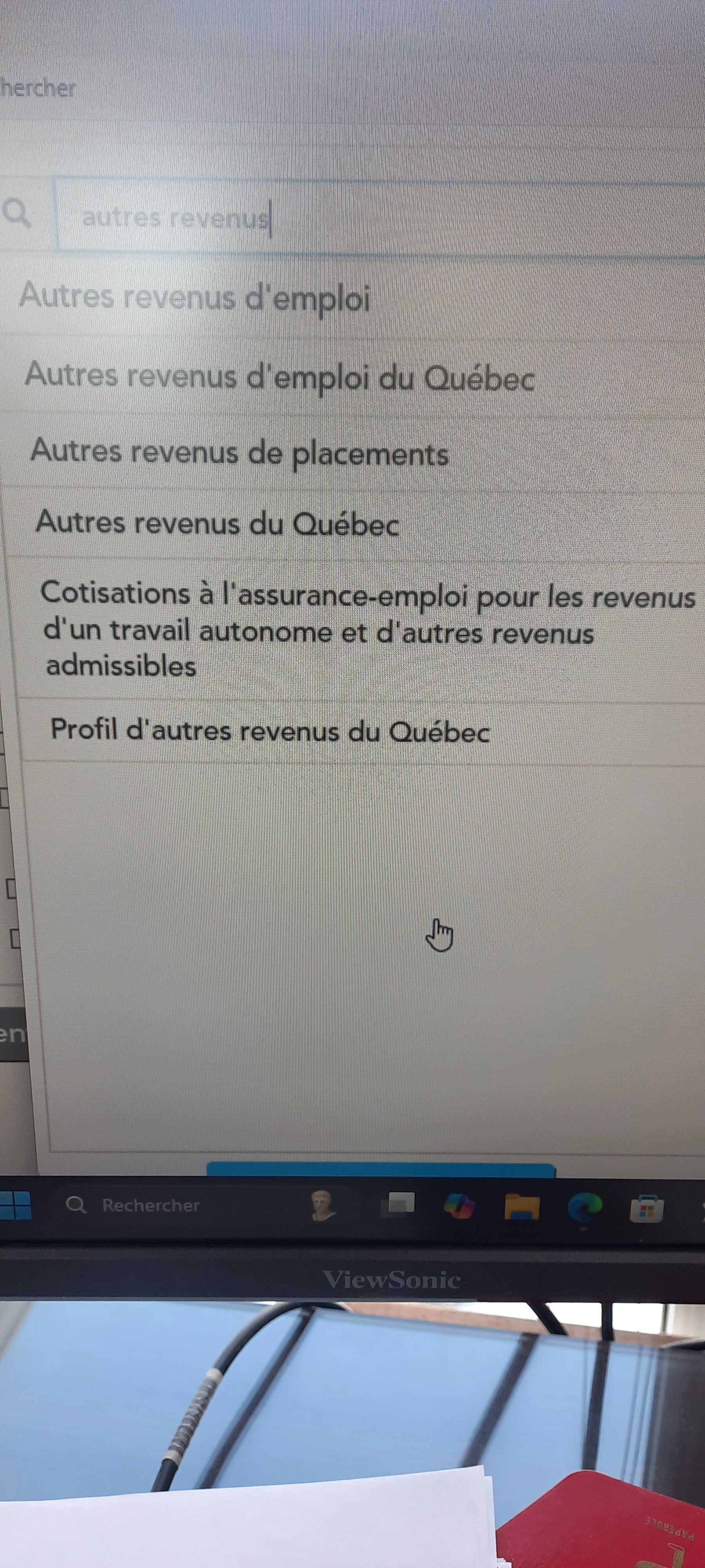 Lorsque je recherche "autre revenus"... jai des options mais je ne sais quel prendre