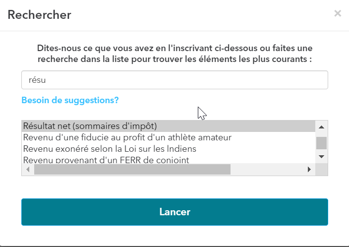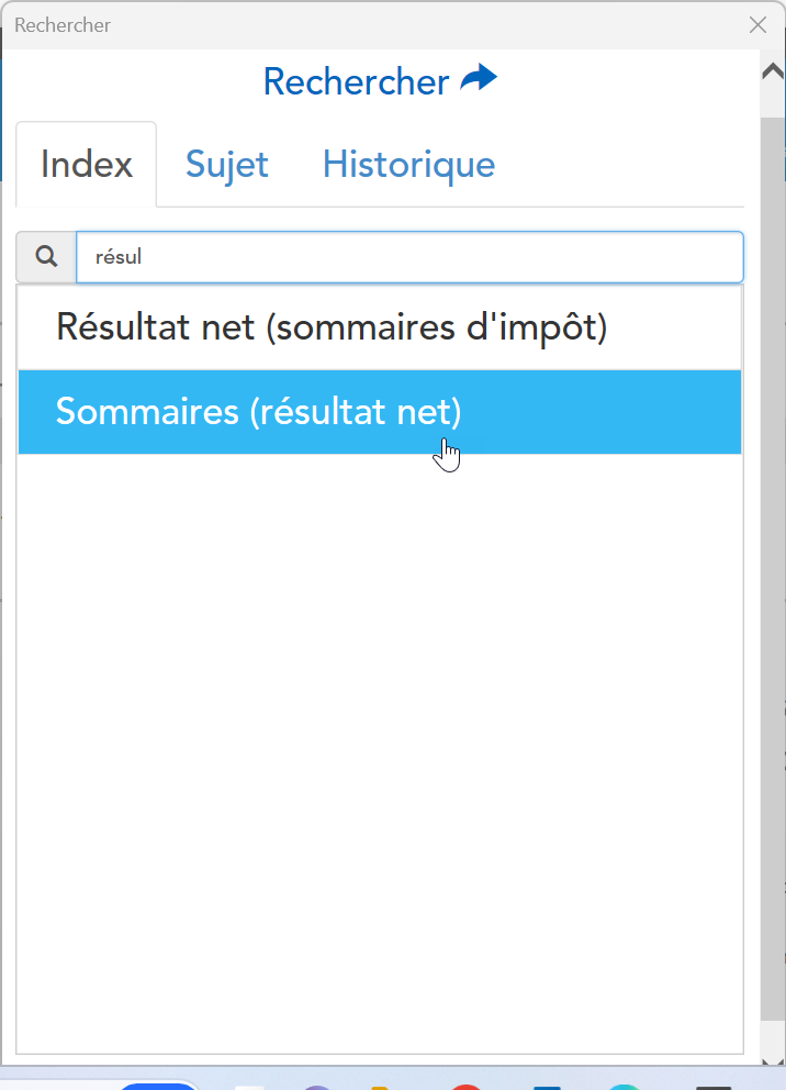 Si vous êtes sur la version en ligne du logiciel, vous devez taper le mot clé résultat pour l'obtenir (cf image):