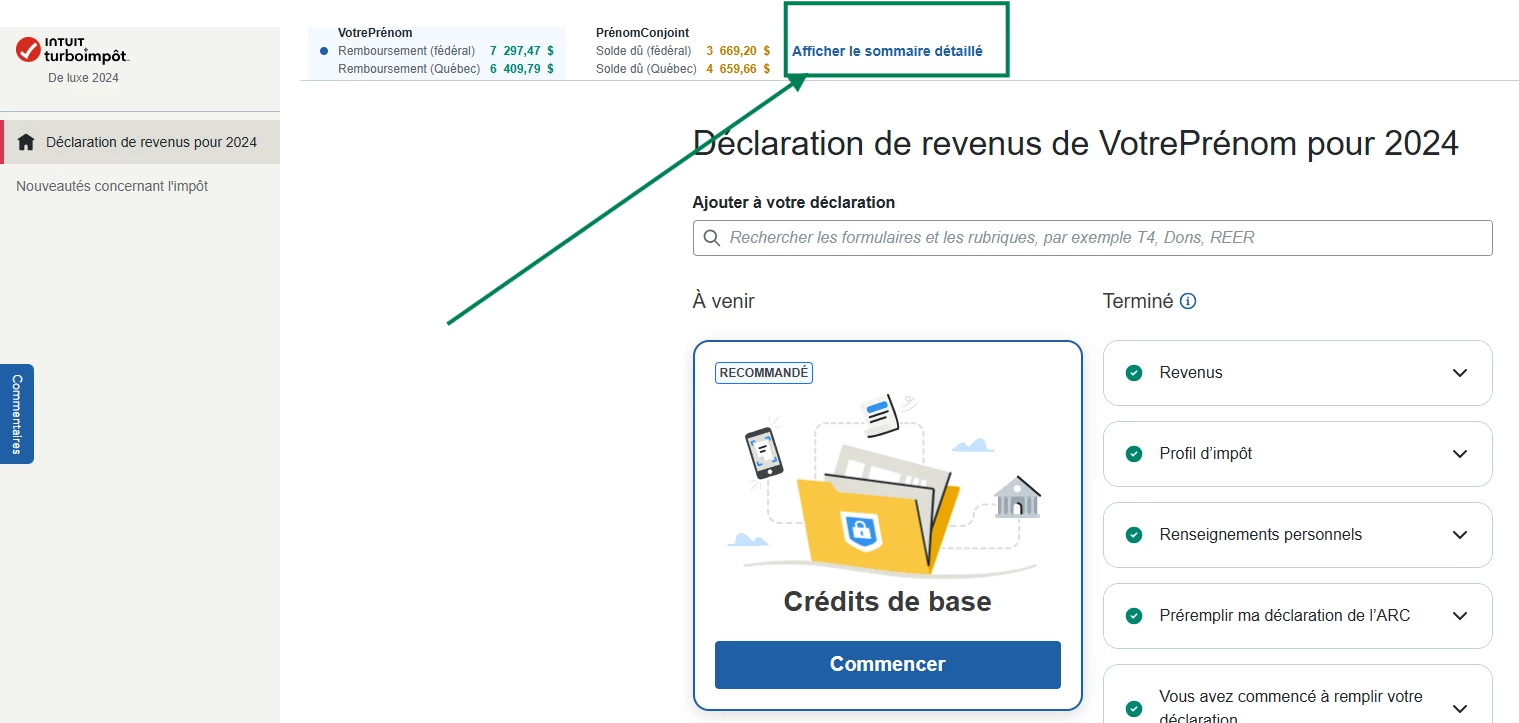 Je vous invite à consulter le sommaire de la déclaration afin de voir les détails selon vos données