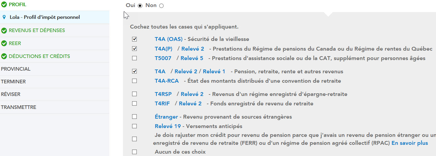 Dans le menu de gauche, cliquez sur Profil Cochez la case T4A / Relevé 2 / Relevé 1