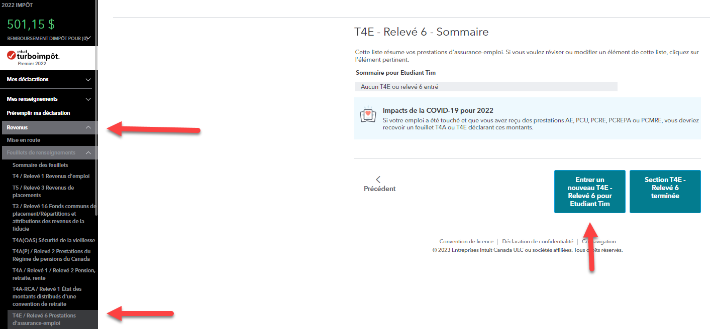 Je veux savoir ou mettre le montant reçu en assurance emploi dans Turbo impôt