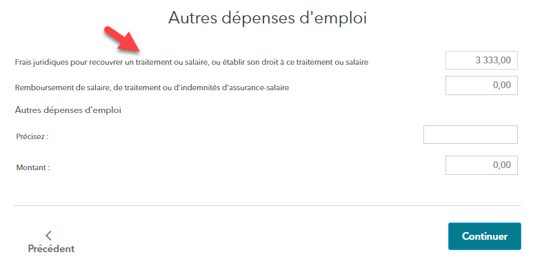 Continuez votre déclaration jusqu'à la page Autres dépenses d'emploi et entrez votre montant.