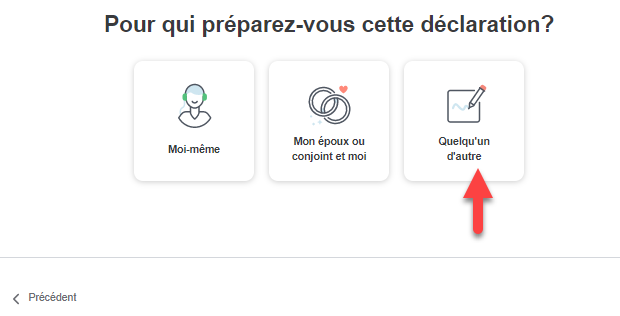 Vous avez dépassé l'endroit où vous devez répondre que la déclaration est faite pour quelqu'un d'autre. C'est au 6ème écran que vous devez choisir
