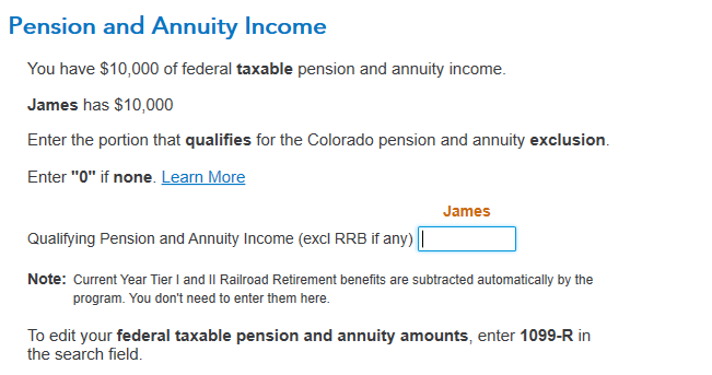 Why Turbo Tax did not include my pension in Line 4, DR0104AD, Coloardo?