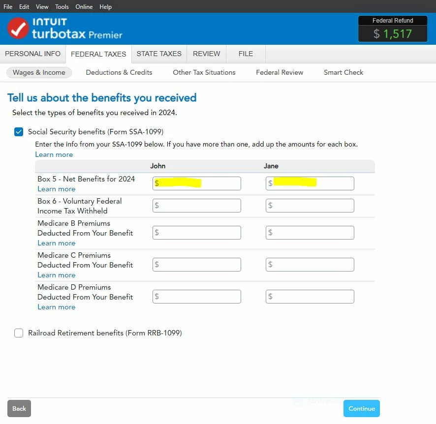To enter Social Security benefits reported on form SSA-1099