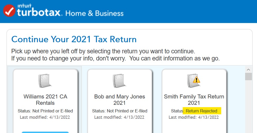 I e-filed, got a confirmations, then a rejection. When I went back into turbotax, it didn't know that I had efiled and wanted to do it again. I thought it was supposed to tell me the problem?