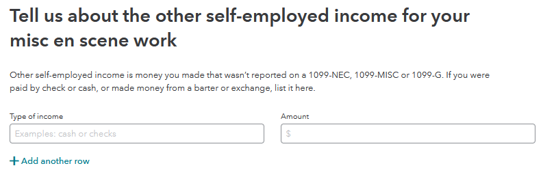 If you received self-employment income that was not included on a Form 1099, you may enter that in the Add Income section of the Schedule C. Cash App transactions, cash, checks, and other methods of payment can be entered here.
