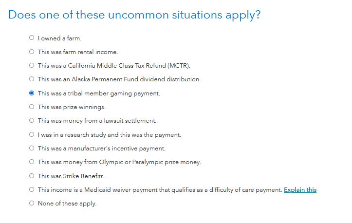 Jjessie111_4Forum|Forum|3 years agoFebruary 20, 2023QuestionI am having trouble with my 1099 MISC form. It thinks that is self income but this is a tribal per capita check I receive from my tribe quarterly.Forum|Forum|3 years agoFebruary 20, 20231 reply0 viewsit keeps thinking it is a work summaryTurboTax Live Deluxe Online