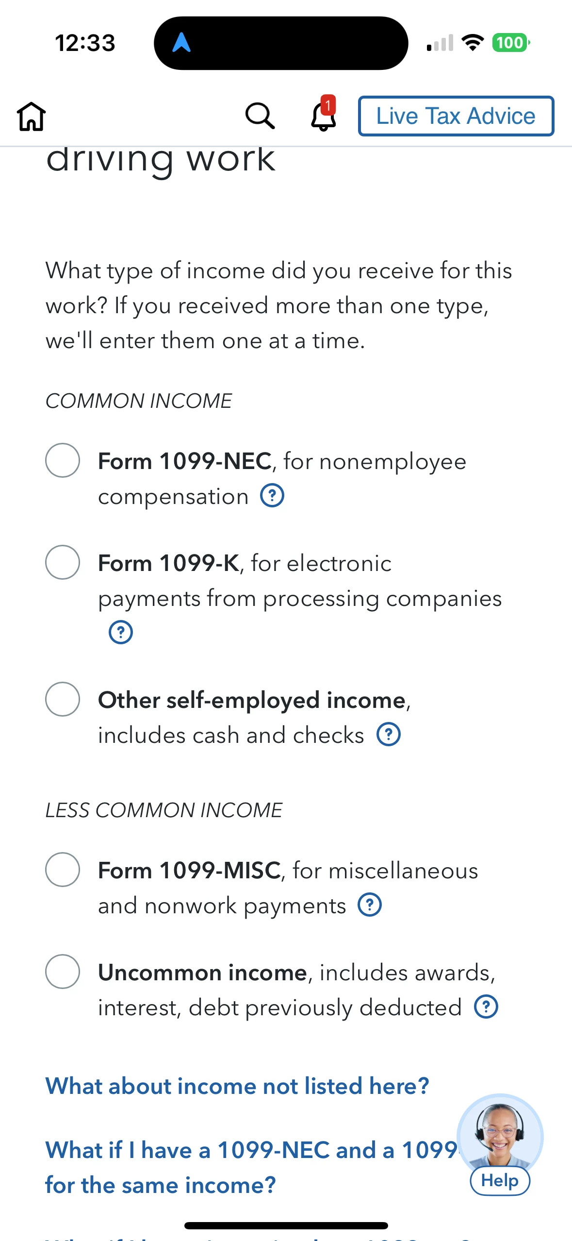 When filling out that I was self-employed it’s asking “What type of income did you receive for this work?” since I didn’t receive any 1099 would I put it under other self-employment income?