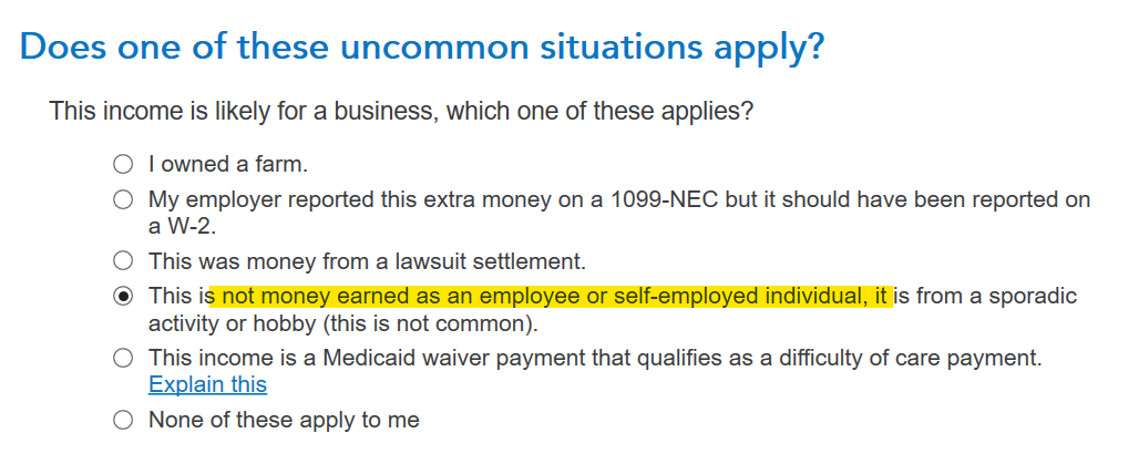 It is earned income, but not self-employment. To enter your strike pay on a 1099-NEC, you will need to mark the box that says, This is not money earned as an employee or self-employed individual. It is sporadic or hobby income (this is rare). They should have used form 1099-misc, and you may want to request a corrected version (the IRS assumes income on 1099-nec is self-employment).