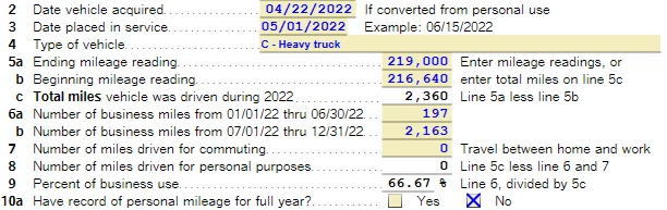 Turbotax reporting only 2/3 business use on vehicle when it is 100%