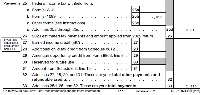 Not exactly.  The second screenshot appears to be from a Federal return.  If the question were asking for Federal information, then line 33 would be correct.