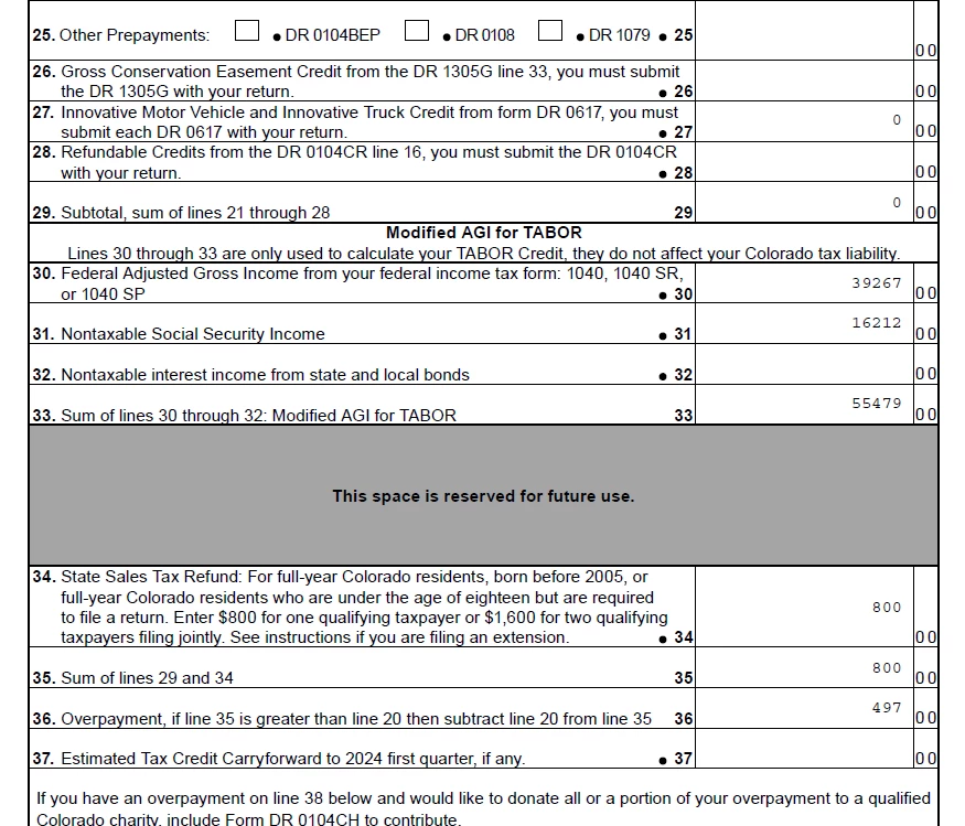 Your CO tax withholding/payments would be the amount on line 35, which is the sum of all of your payments credits.