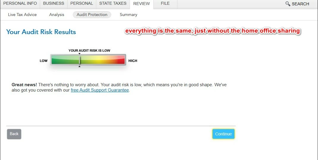 Initially, I didn't share the home office. That means there are almost no expenses for the MTM trader business. Everything is fine. The audit risk result is LOW.