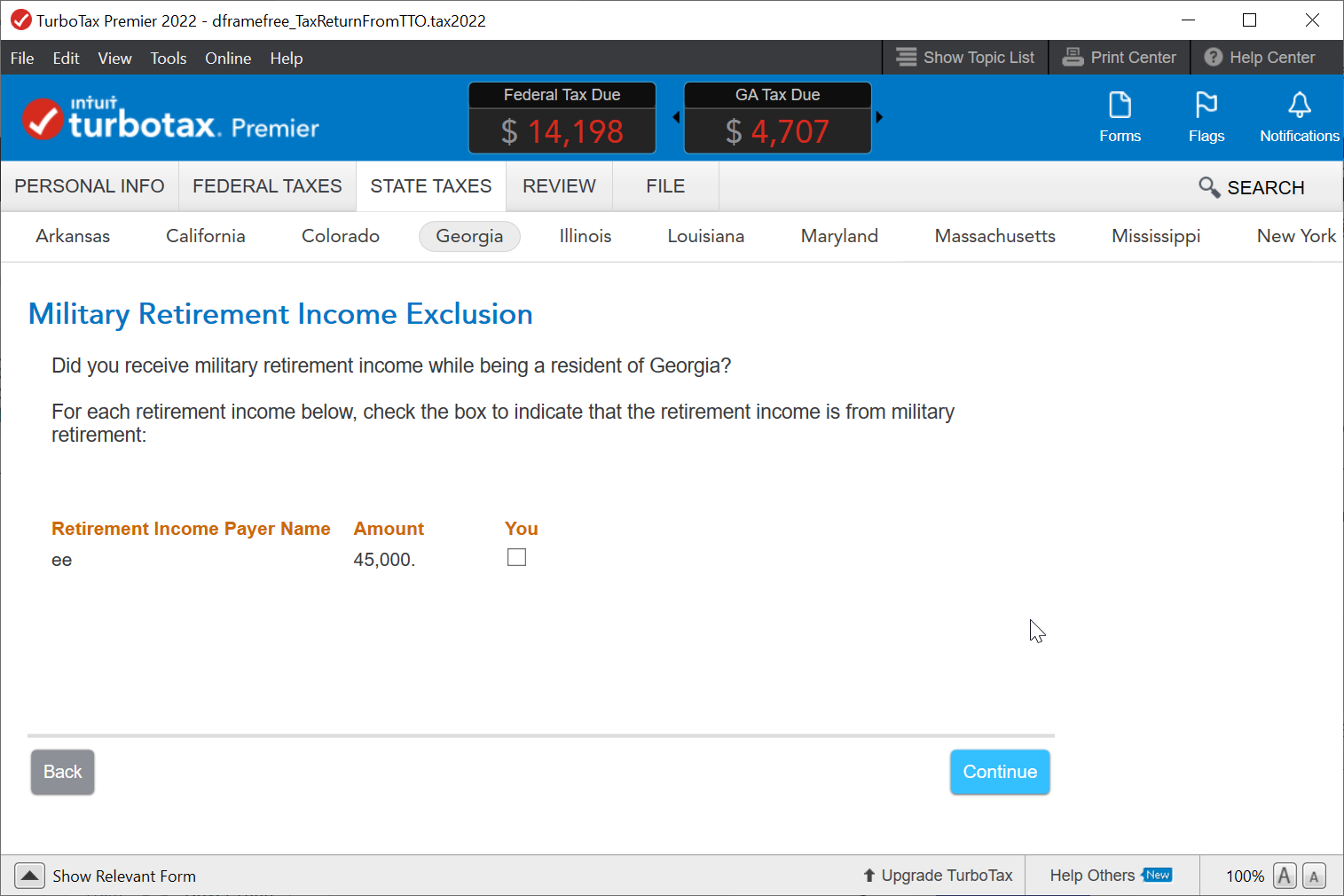 Im 64, receive a military pension. Do I have to enter the exclusion, and if so, where? Or does Georgias software automatically account for it?